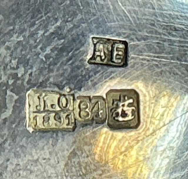 Клейма: фабрики –" А Е", тройник московской городской пробирной части – герб города Москва, Георгий Победоносец на коне, поражающий копьем дракона, с инициалами управляющего округом Л. Олекса, с датой 1891 и пробой для изделий из серебра – 84. Серебряный чайно-кофейный сервиз выполнен в мастерской Александра Сергеева Егорова в 1891 году.