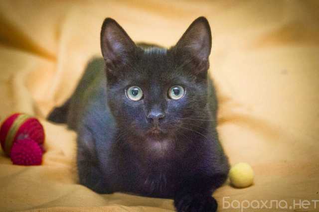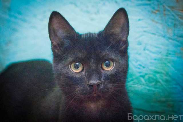 Юная черненькая кошечка, невесомая, лёгкая, хрупкая леди Изюминка. Возраст 6 месяцев. Эта грациозная красавица с чудесными желтыми глазками очень хочет найти дом.