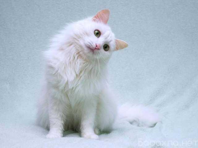 Белоснежный зеленоглазый пушистый котик Тимоша – трогательный, доверчивый и ласковый малыш.