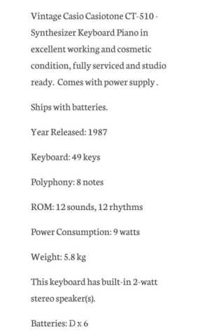 Синтезатор. Винтаж. Casio Casiotone CT-510. Made in Japan. Привезён из Нью-Йорка. Проверили и убрали. Никогда не был в использовании. Состояние нового.