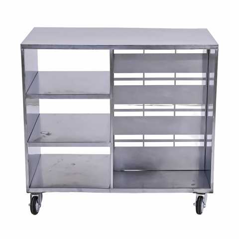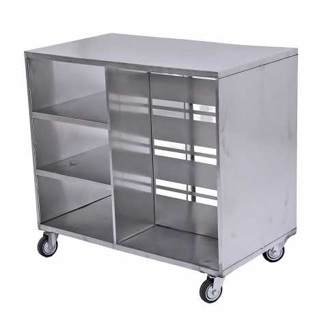 Тумба на колесах используется для хранения посуды, инвентаря, столовых приборов и сухих видов продуктов на предприятиях общественного питания. Рабочую поверхность стола можно использовать для обработки пищевых продуктов, а также в качестве вспомогательной поверхности, на которой можно расположить кухонную технику.