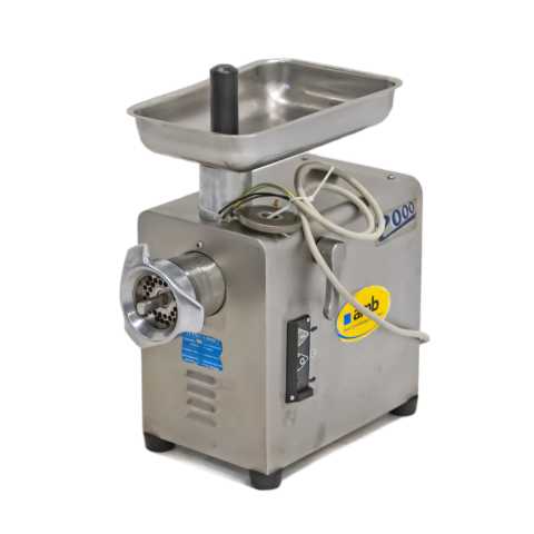 Мясорубка AMB TC/82 2000 оснащена панелью управления с кнопками подключения к сети и запуска двигателя, а также вентилируемым мотором для непрерывной работы. Корпус, бункер и контейнер для мяса выполнены из нержавеющей стали 18/8.