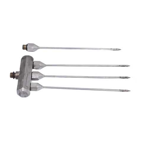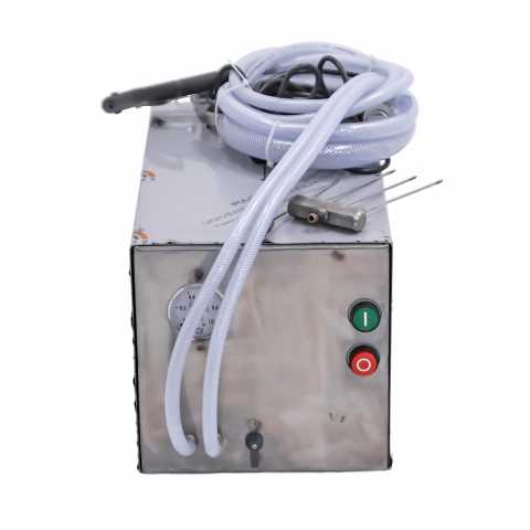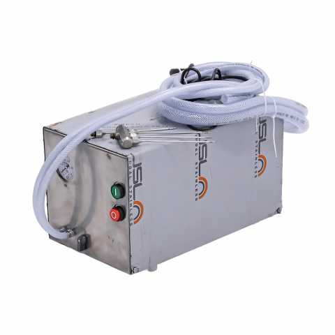Инъектор для посола типа ФИП марки ФИП-5 (ручной), 460х350х340мм, 220В, 450Вт. Осуществляет посол костного и бескостного мяса говядины, свинины, баранины, конины, оленины, а также мяса птицы и рыбы. В комплект поставки входит итальянский электронасос, два пистолета, заборник рассола с фильтром. Инъектор снабжен регулятором давления и манометром, что позволяет контролировать и регулировать подачу рассола в сырье под давлением от 0.5 до 3-х бар. Иглы взаимозаменяемые, что делает инъектор универсальным. Стандартная комплектация включает два пистолета с 1-й и 3-мя иглами соответственно, каждая игла имеет 6 отверстий, имеет длину 180 мм, диаметр 4 мм. Под заказ можно укомплектовать пистолеты двойными иглами, а также иглами различных диаметров 2,5 мм, 3мм и 4 мм. Работа насоса контролируется защитным автоматом, что делает инъектор безопасным в работе.