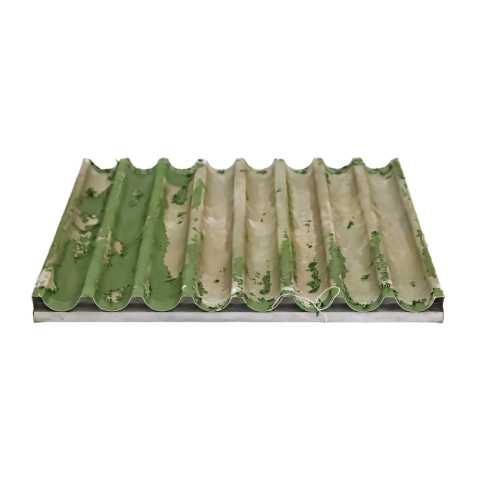 Противень алюминиевый перфорированный для багетов 600х800, 8 волн используется на предприятиях общественного питания и торговли, в пекарнях и кондитерских.