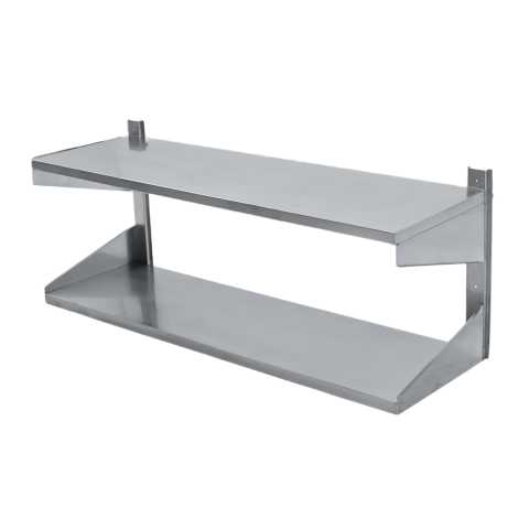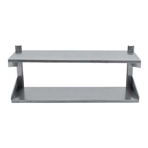 Полка навесная двухъярусная предназначена для организации рабочего пространства на кухонной зоне, складском комплексе, предприятии питания, торговли. Имеет два уровня выкладки. Можно использовать для выкладки аксессуаров, специй, посуды, инвентаря и проч. Изготовлена из высококачественной нержавеющей стали, предназначена для эксплуатации в условиях повышенной влажности, не впитывает запахи и легко моется.
