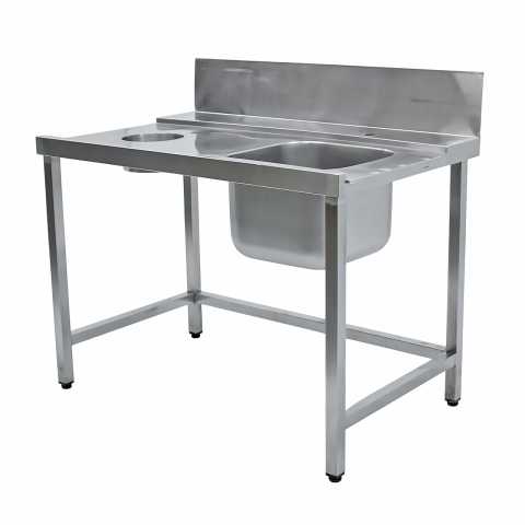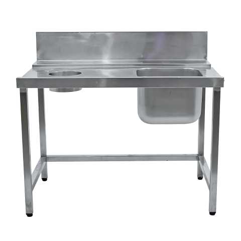 Стол предмоечный 1200х750х1070 левый (1 ванна, отверстие для отходов) используется на любом предприятии общественного питания. Она предназначена для мытья рыбы, продуктов питания, инвентаря и т.п. Мойка выполнены из пищевой нержавеющей стали. Каркас из нержавеющей стали. Стойки ванны оснащены регулируемыми по высоте опорами.