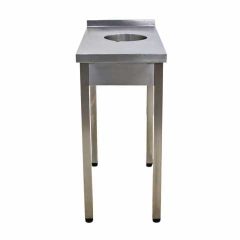 Стол производственный с отверстием для сбора отходов предназначен для подготовки ингредиентов и приготовления блюд в заведениях общественного питания и торговли. Отверстие позволяет расположить мусорное ведро прямо под столом и избавляться от отходов, не прерывая рабочего процесса. Нержавеющая сталь высокого качества способна выдерживать большие нагрузки, устойчива к повышенной влажности, перепадам температуры и не впитывает запахи. Изделие не требует трудоемкого ухода и является экологичными.