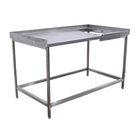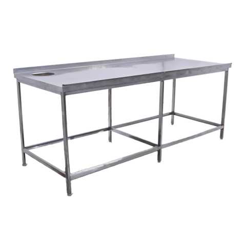Стол производственный угловой с отверстием для отходов предназначен для разделки мяса в заведениях общественного питания и торговли. Отверстие позволяет расположить мусорное ведро прямо под столом и избавляться от отходов, не прерывая рабочего процесса. Нержавеющая сталь высокого качества способна выдерживать большие нагрузки, устойчива к повышенной влажности, перепадам температуры и не впитывает запахи. Изделие не требует трудоемкого ухода и является экологичными.