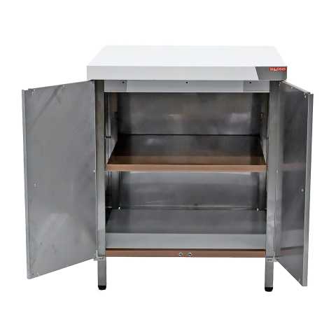 Стол-тумба из нержавеющей стали 700х700х850 Hicold НСЗ-77 расп. двери - предназначен для раскатки теста и обработки ингредиентов для приготовления блюд, а также может использоваться в качестве дополнительного места для установки кухонных приборов на предприятиях пищевой промышленности, общественного питания и торговли, в пекарнях и кондитерских.