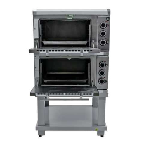 840х840х1490(+30) мм лицевая часть - нерж. сталь;- модульная конструкция ( состоит из 2 секций):- материал изготовления жарочного шкафа - углеродистая сталь;- в комплекте каждой секции 3 противня из углеродистой стали 470х530х30мм;- диапазон регулирования температуры жарочного шкафа +20...+270 С;- внутренние размеры жарочного шкафа - 535х535х299 мм;- разогрев до 240 С за 30 мин;- аварийный термостат;- раздельная регулировка мощности верхних и нижних ТЭНов; - подставка разборная; - подставка, боковые и задние стенки из окрашенного металла;- регулируемые по высоте ножки. ДОПОЛНИТЕЛЬНЫЕ ОПЦИИ:- противни 470х530х30, нерж.Масса, кг 155 кг. Вес в упаковке 205 кг. Размеры в упаковке (ДхГхВ) 990х1100х1450 мм.Кабель для подключения в комплект поставки не входит и приобретается дополнительно.