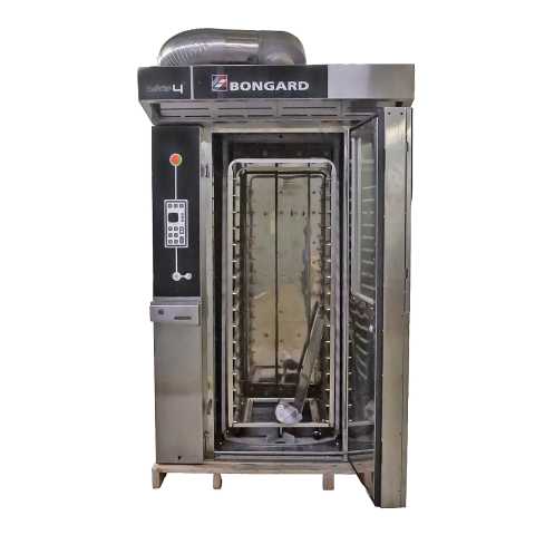 Печь ротационная Bongard 8.64 + 1 шпилька-тележка (16,600х800) - профессиональная ротационная печь с интуитивной системой управления для использования на хлебозаводах и промышленном пекарском производстве. Встроенные автоматические программы + до 200 настраиваемых рецептов на панели управления. Высокая универсальность использования: печь может выпекать любые хлебобулочные изделия. Преимущества модели: функция пароувлажнения и равномерное выпекание продукции за счет вращающейся платформы. Для обновления ПО и загрузки дополнительных программ в конструкции имеется USB порт. В комплекте вытяжной зонт с системой пароотвода.Размер противней - 600 х 800.Без жалюзей