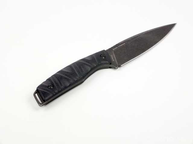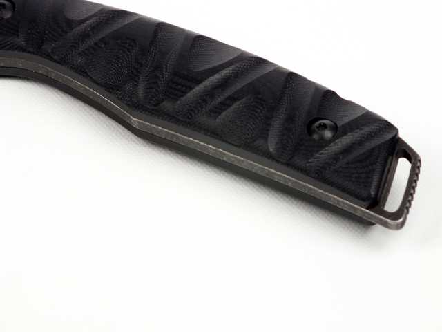 Удобная рукоять из прочного стеклотекстолита G10 устойчива к внешним воздействиям, не скользит в руке, а рифление типа "токсик" делает хват ещё более надёжным.