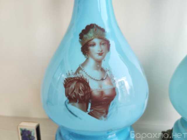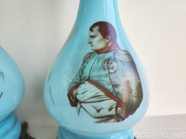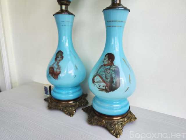 Редчайшие высокие парные антикварные французские керосиновые / масляные лампы с портретами Наполеона I Бонапарта и его жены Жозефины де Богарне в отличной коллекционной сохранности.