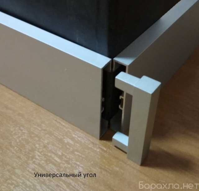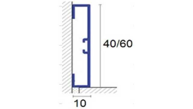 Алюминиевый плинтус для пола 40*10, 60*10 прямоугольный, устанавливают на клей, и защелкивают на шляпке самореза (вкрученного в стену).