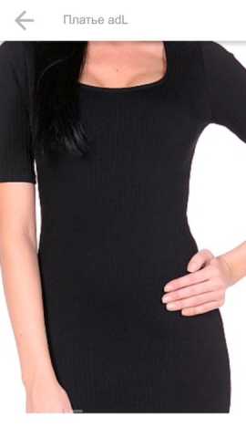 Черное платье ADL из рельефного трикотажа. Сзади потайная молния. Длина по спинке 93см. Обхват груди 78-82, обхват талии 58-62, обхват бедер 86-90см. Размер XS. Подходит на рост 160-170 см. Новое. С ярлыками.