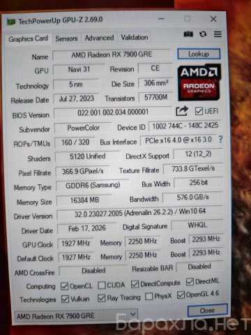 Продам видеокарту PowerColor Fighter RX 7900 GRE 16gb OC.